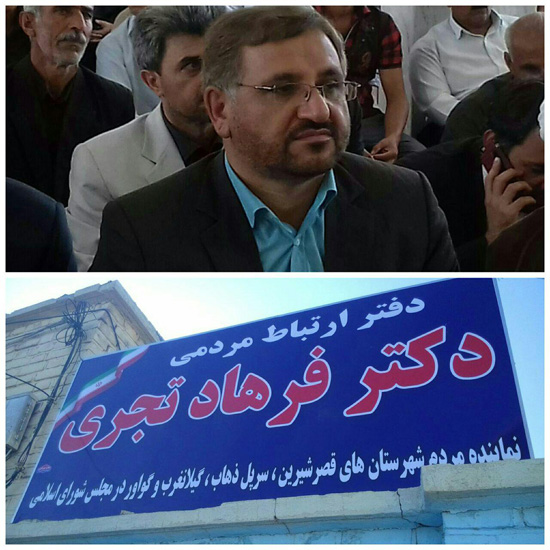 نوای گیلانغرب :طی مراسمی دفتر ارتباط مردمی  دکتر فرهاد تجری نماینده مردم شهرستانهای قصرشیرین ،گیلانغرب ،وسرپل زهاب روز گذشته با حضور نماینده و جمعی از مسئولین گیلانغرب وگواور درسرمست ر افتتاح شد.