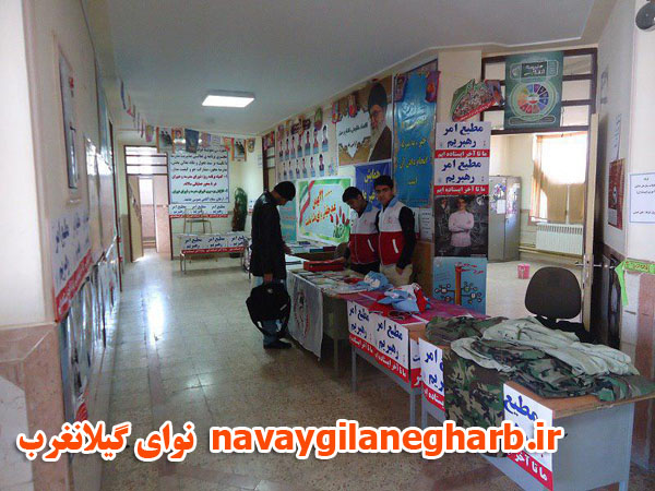 نوای گیلانغرب :به مناسبت ایام الله دهه ی فجر کانون دانش آموزی هلال احمر در دبیرستان نمونه دولتی امام صادق شهرستان گیلانغرب اقدام برپرپایی نمایشگاه کتاب وبروشور والبسه هلال احمر کرد