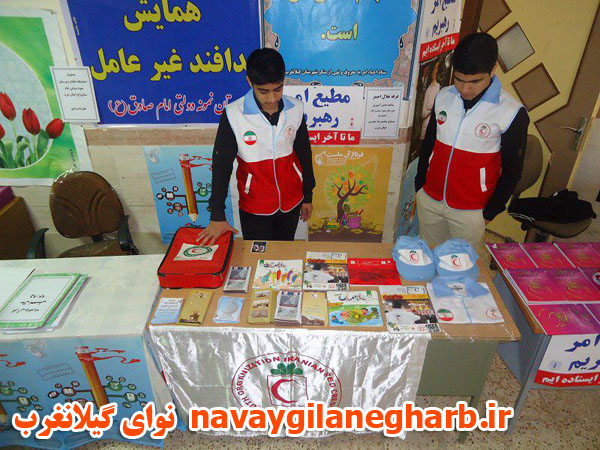 مسول جمعیت جوانان هلال احمر گیلانغرب هدف از ایجادغرفه هلال احمرآشنایی دانش آموزان با البسه هلال احمر و اشنایی با فعالیت های جوانان وتشویق دانش اموزان جهت عضویت در کانون های دانش اموزی عنوان کرد