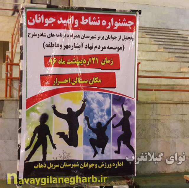 جشنواره نشاط و امید جوانان به همت اداره ورزش وجوانان در روز پنج شنبه ۲۶ اردیبهشت ماه در سرپل زهاب برگزار شد