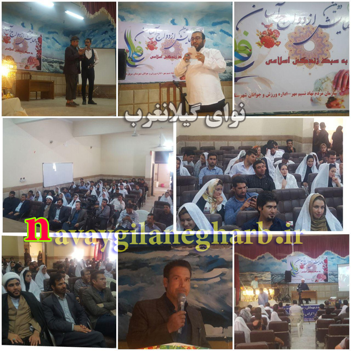 به مناسبت هفته وپیوند آسمانى حضرت على(ع) و حضرت فاطمه(س) همایش ازدواج آسان به سبک زندگی اسلامی صبح امروز چهارشنبه ۲۴ مرداد۹۷ به همت اداره ورزش و جوانان وموسسه مردم نهاد نسیم مهر شهرستان سرپل زهاب  با حضور جمعی از مسئولین در شهرستان سرپل زهاب برگزار شد