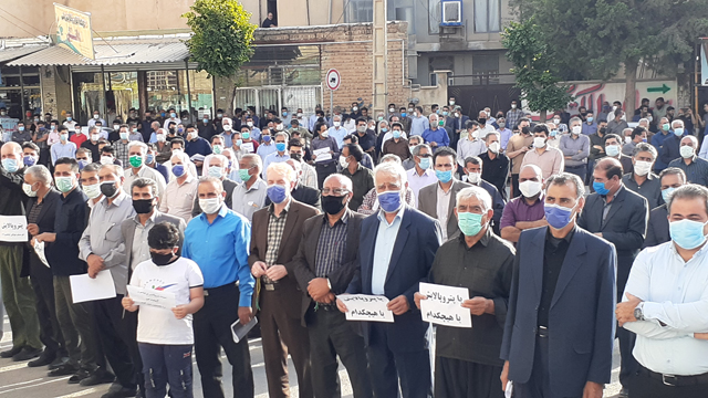 تجمع اعتراض آمیز مردم گیلانغرب برای مطالبه پتروپالایش درمقابل مسجد جامع
