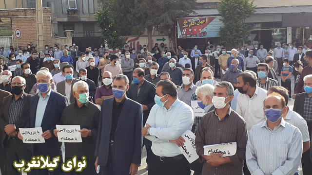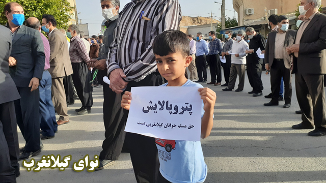 برخی ازجوانان وسایر مردم بادر دست داشتن کاغذنوشتهها و بنرهایی تحت عنوان پتروپالایش حق مسلم گیلانغرب است از این طریق نسبت به انتقال این طرح اعتراض کردند