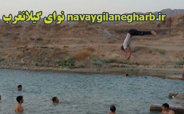 تصاویرشیرجه دیدنی شناگر گیلانغربی در سد سراب با لباس