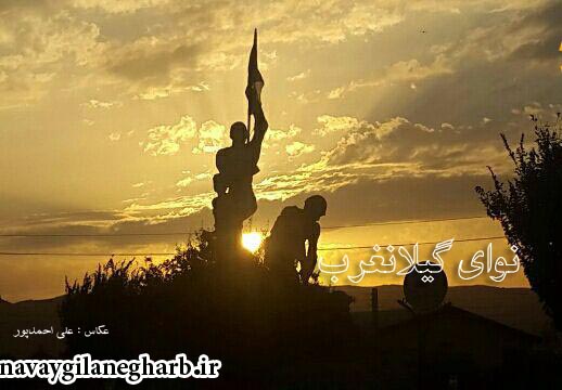 نوای گیلانغرب :تصویری از تندیس رزمنده میدان آزادی شهر گیلانغرب درهنگام غروب/عکاس علی احمدپور
