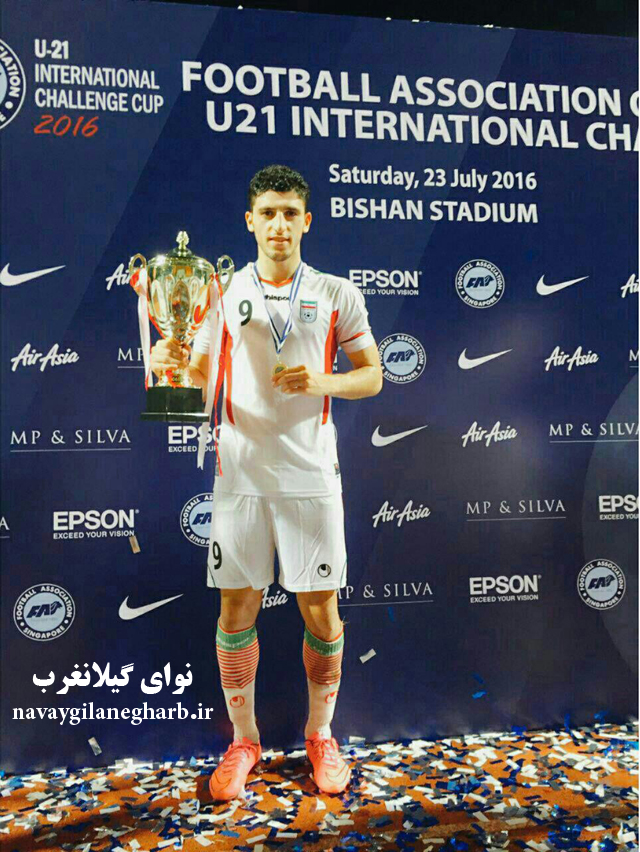 جام قهرمانی تیم ملی جوانان در تورنمنت سنگاپوربردستان بازیکن گیلانغربی+عکس