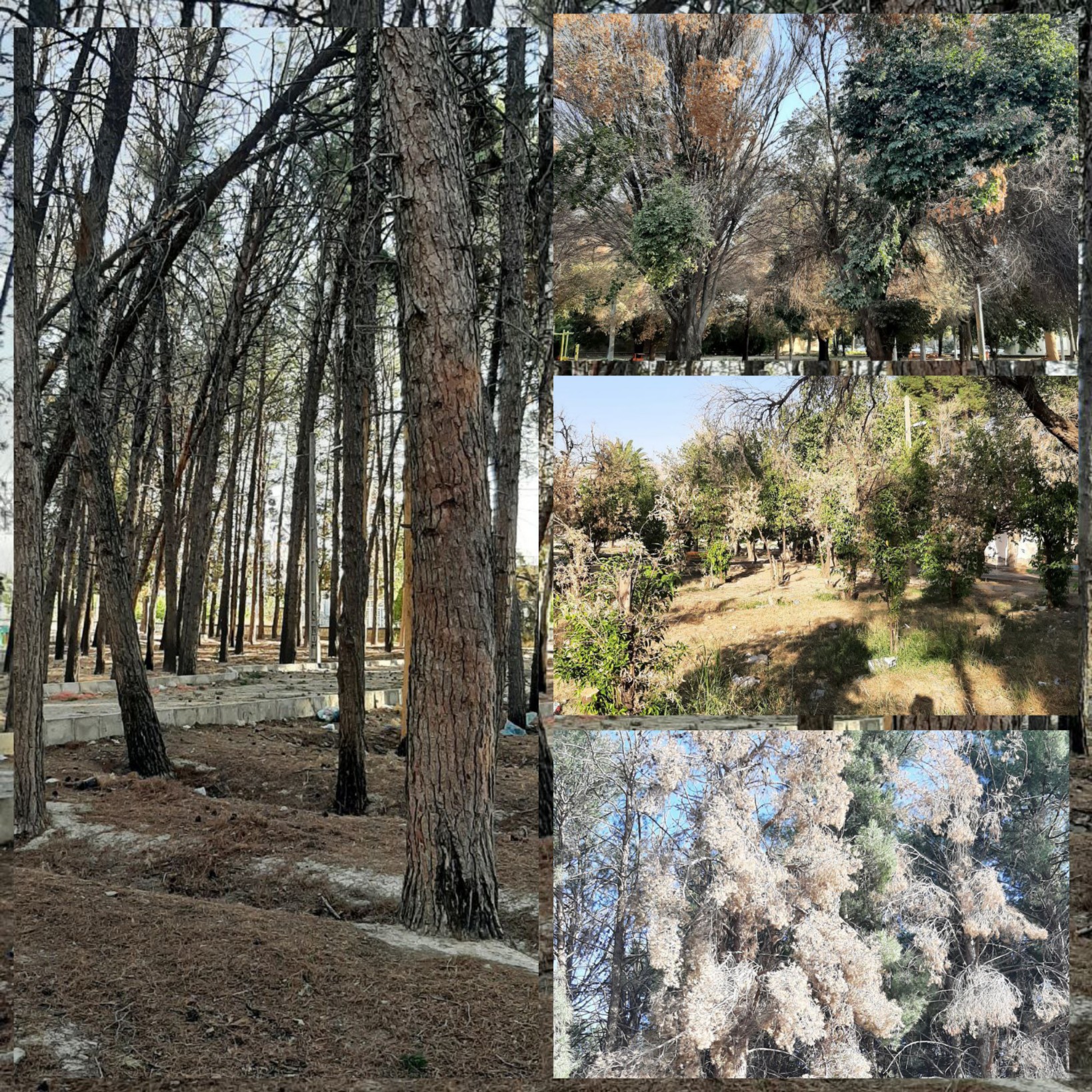 خشک شدن درختان پارک فلاحت و نارون گیلانغرب درسایه بی توجهی مسئولین شهرداری
