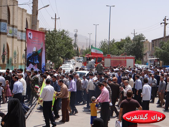 نوای گیلانغرب :درگیلانغرب مردم  از ساعت ۱۲ ظهر از مسیر میدا شورا  به سمت مصلای گیلانغرب را با اعلام انزجار از اقدامات اسرائیل جنایت کار طی کردنددر ادامه تصاویری از راهپیمایی روز قدس توسط مردم روزه دار گیلانغرب را مشاهده می کنید.