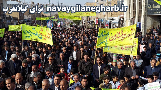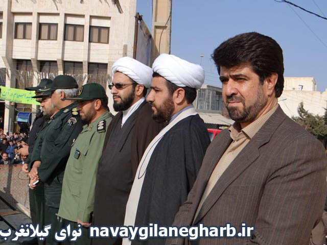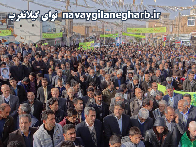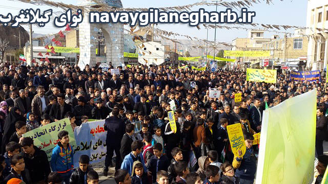 نوای گیلانغرب :همزمان با سی و هشتمین سالگرد پیروزی انقلاب اسلامی مراسم راهپیمایی ۲۲بهمن امروز صبح با حضور امام فرماندار ، مسئولین ادارات ،فرماندهان نظامی وانتظامی، دانش آموزان مدارس و حضور پرشور مردم شهرستان گیلانغرب برگزار شد.