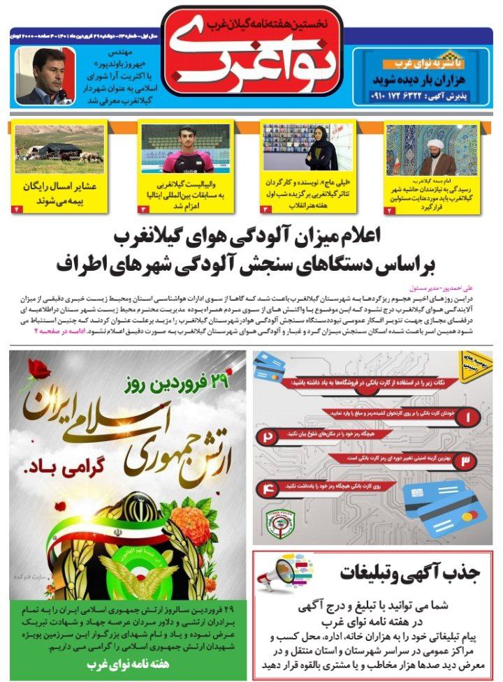 شماره جدید هفته نامه نوای غرب شهرستان گیلانغرب منتشر شد