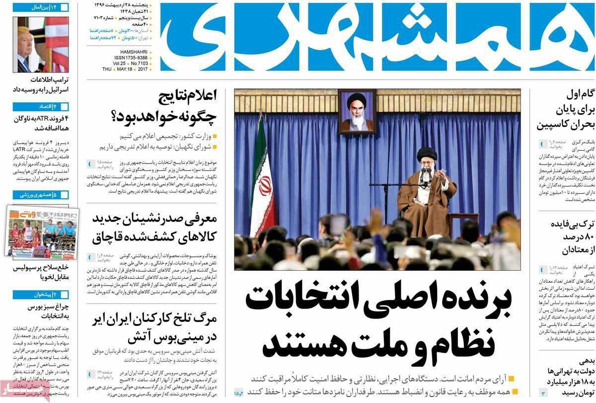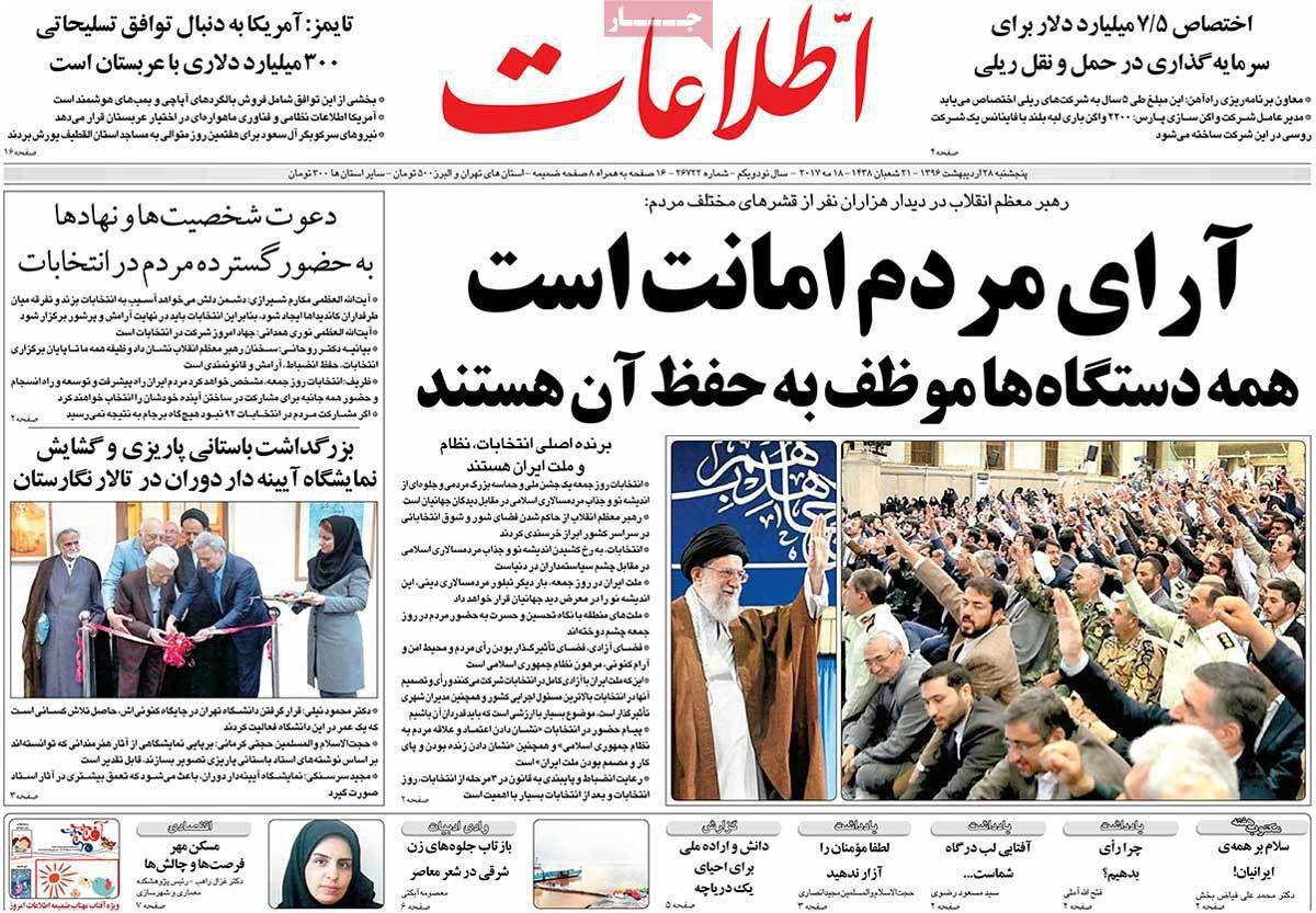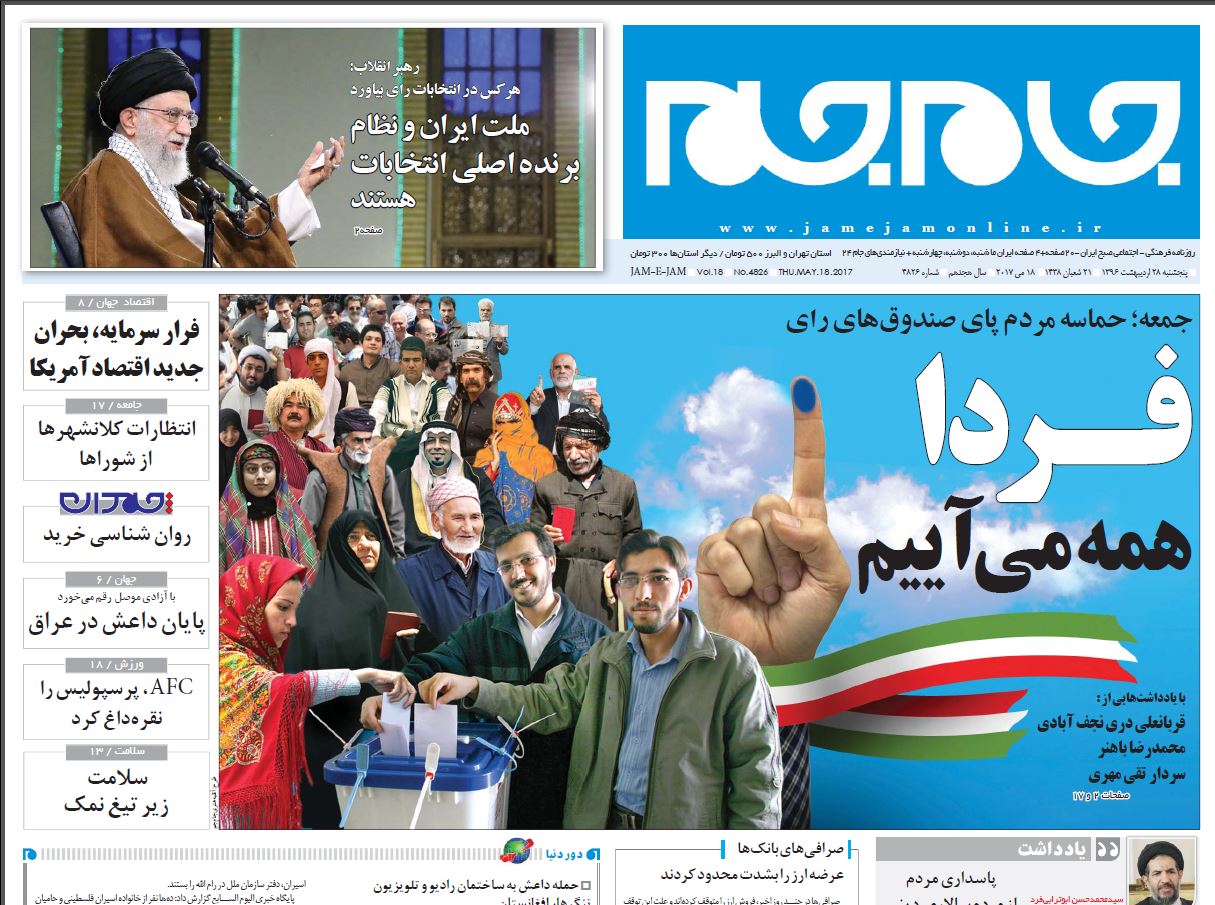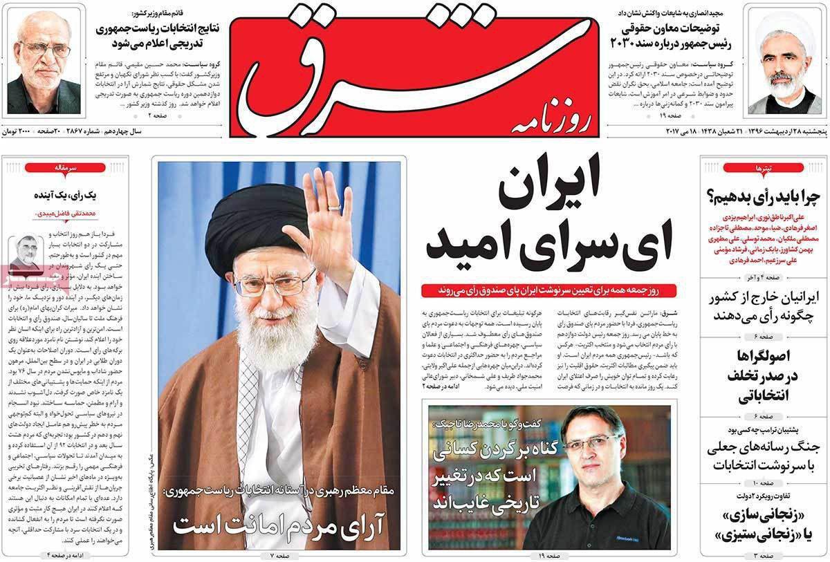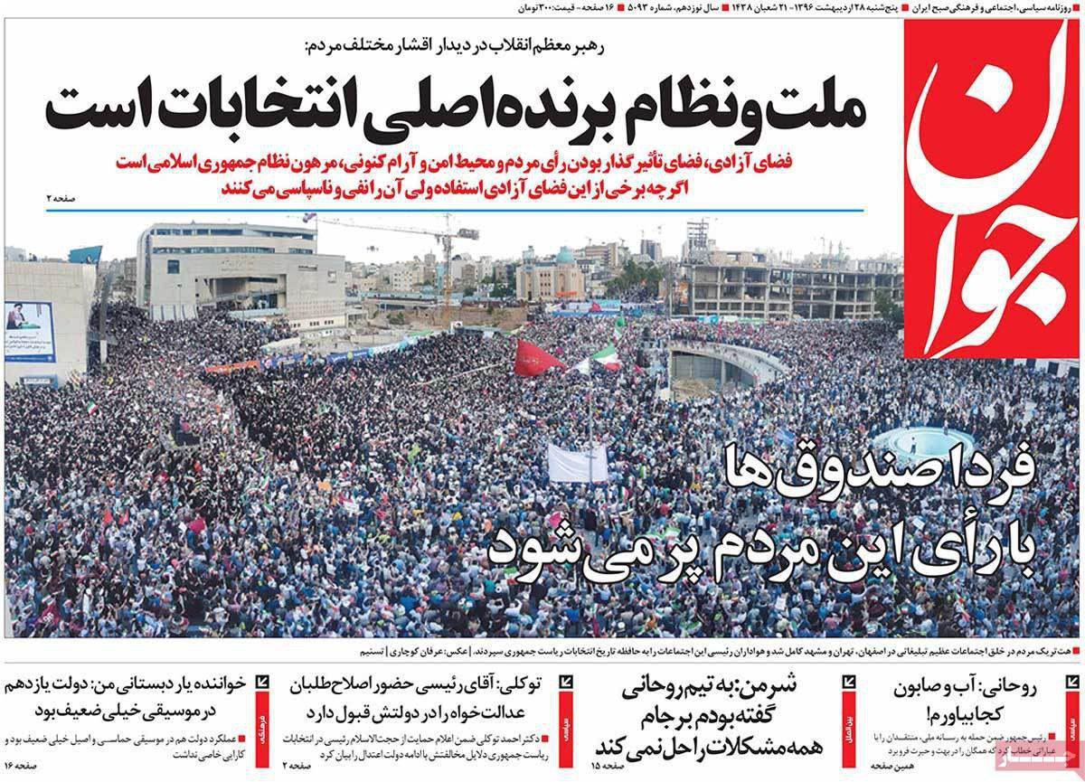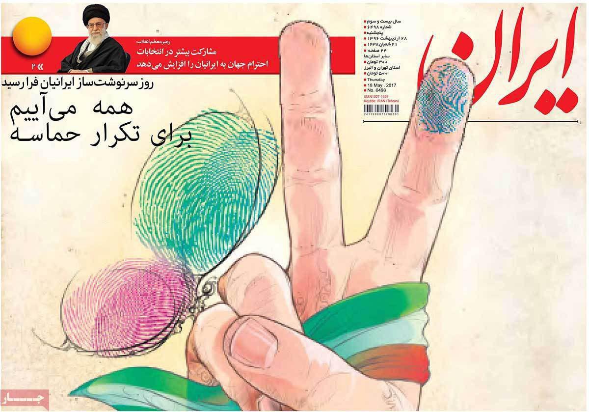 صفحه نخست روزنامه های ایران امروز ۲۸ اردیبهشت ۱۳۹۶را اینجا ببینید.