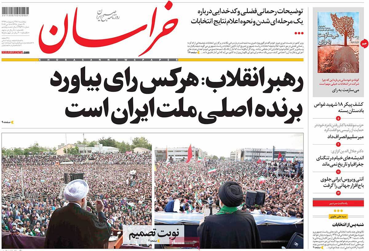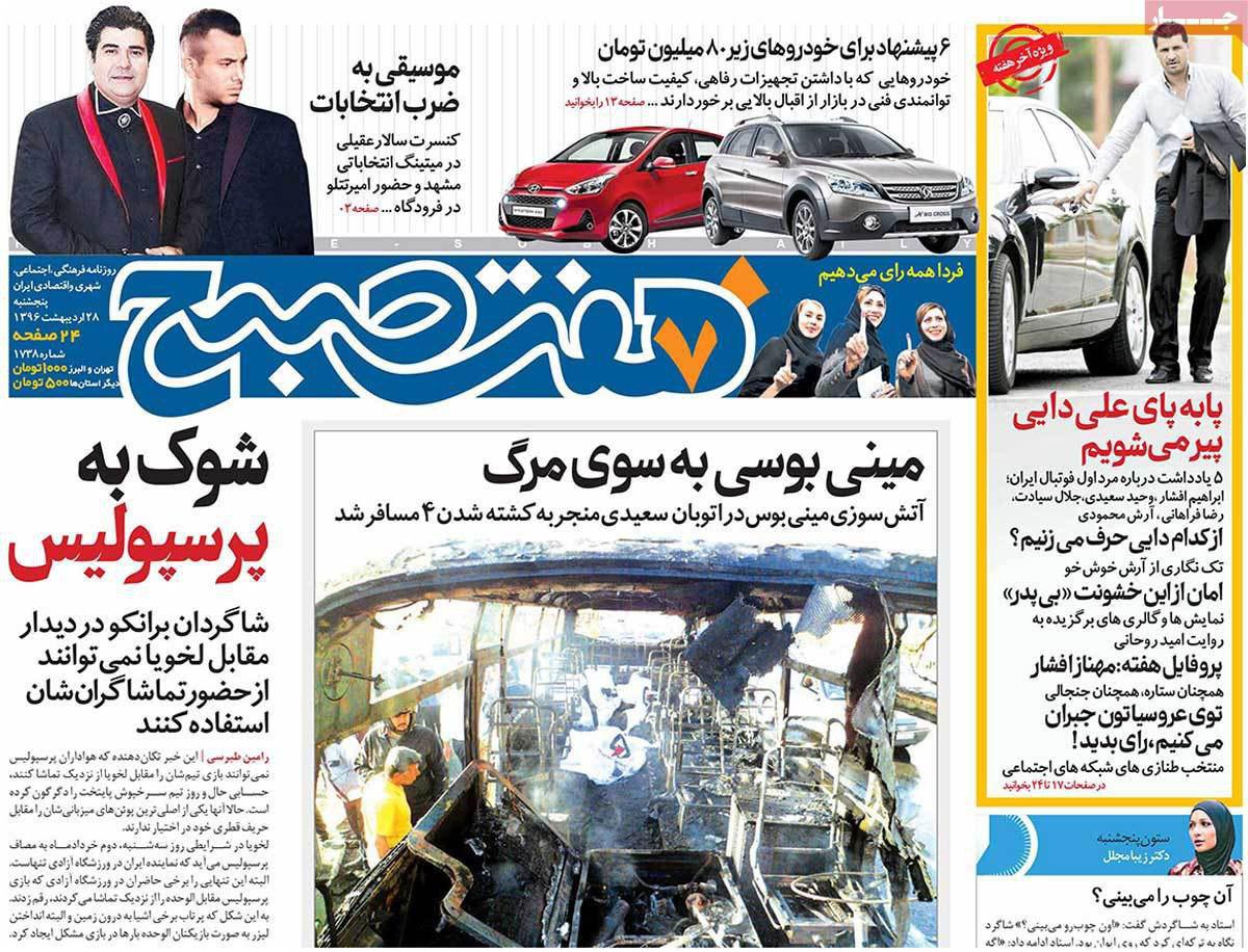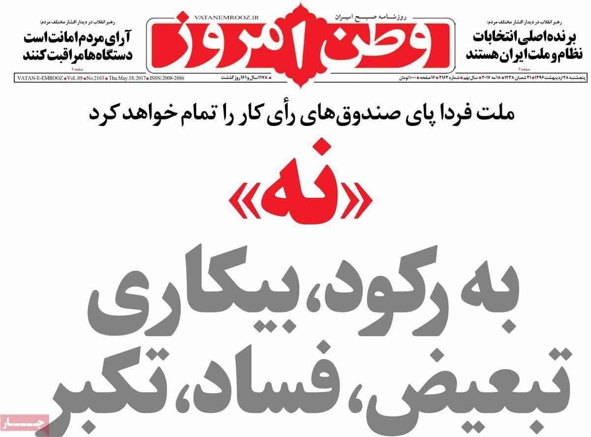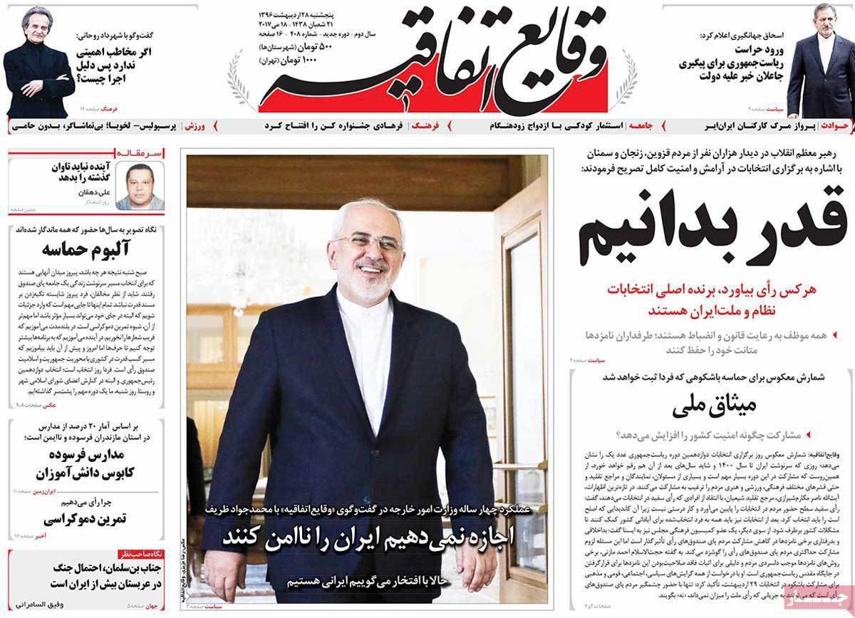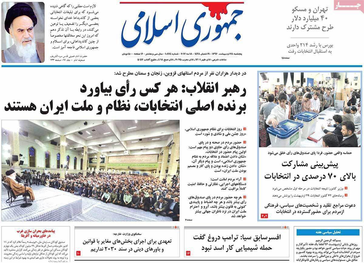 صفحه نخست روزنامه های ایران امروز ۲۸ اردیبهشت ۱۳۹۶را اینجا ببینید.