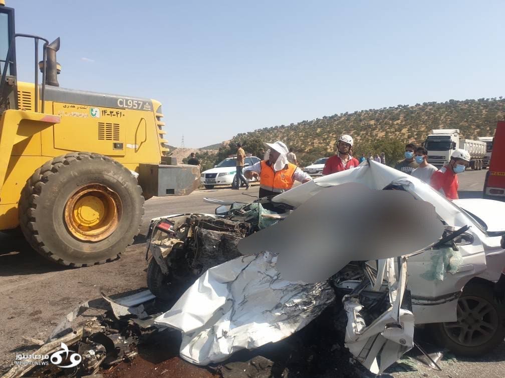 فوت ۴ نفر در تصادف شدید تریلی و خودرو سواری در محور گیلانغرب به اسلام‌آبادغرب