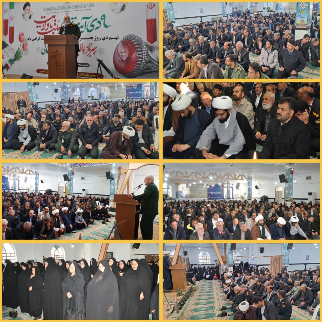 این مراسم با حضورجمع کثیری مردم ، مسئولان شهرستانی و دانش آموزان و فرهنگیان در محل مسجد جامع شهر گیلانغرب با سخنرانی فرمانده سپاه ناحیه گیلانغرب برگزار شد.