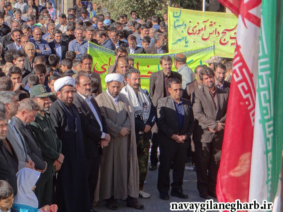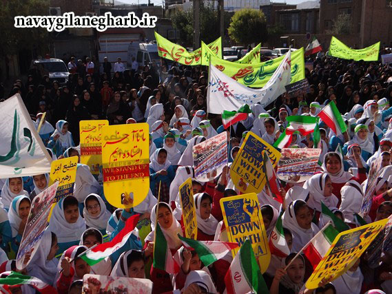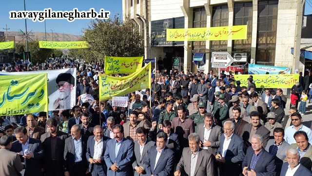 به گزارش نوای گیلانغرب صبح امروز پنج شنبه۱۳ آبان ماه همزمان با روز ملی مبارزه با استکبار جهانی و در سالروز تسخیر لانه جاسوسی آمریکا،،مراسم راهپیمایی سیزده آبان باحضور گسترده قشرهای مختلف مردم بویژه دانش آموزان،به همراه مسئولین دستگاه های اجرایی شهرستان گیلانغرب و با همکاری اداره آموزش باشاخصه استکبارستیزی و مرگ بر آمریکا برگزار گردید