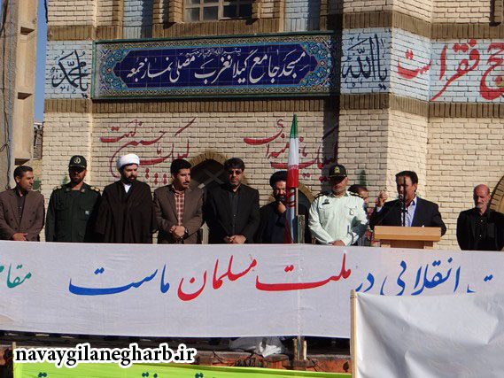 این مراسم باخواندن بیانیه ۱۳آبان واتش زدن آدمک امریکادرمیدان توحیدگیلانغرب پایان گرفت.