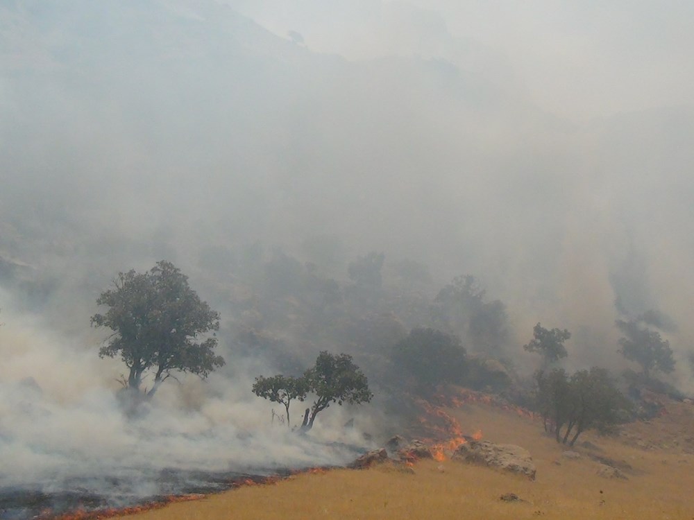 ظهر امروز مجددا حنگلهای دهستان حیدریه از توابع بخش گواور گیلانغرب دچار حریق شده ودرحال گسترش است