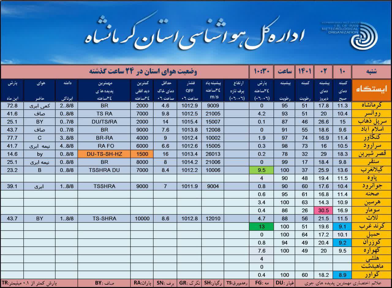در ۲۴ گذشته بیشترین میزان بارندگی در گیلانغرب با ده وروستای استاد با نه و پنج دهم میلیمتر ثبت شده است
